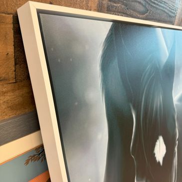 We stretch and mount original canvases of any size, building custom frames when needed so your artwork can hang beautifully on any wall.